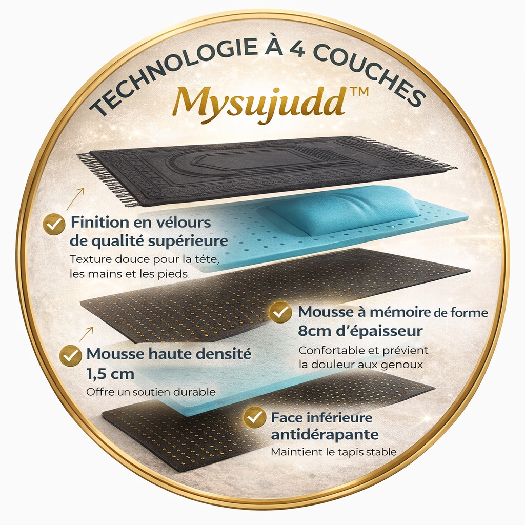 Découvrez Mysujudd™, le tapis de prière ergonomique pensé pour votre confort et votre recueillement.